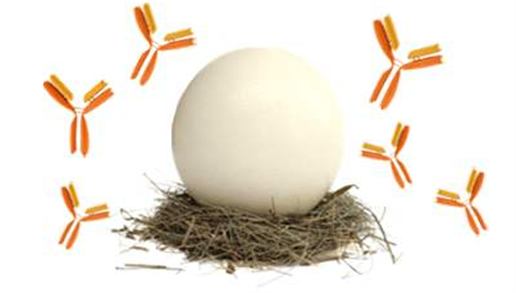 西美杰代理的Exalpha品牌的特色產(chǎn)品是雞多克隆抗體IgY,雞不僅可以在血清中產(chǎn)生免疫球蛋白,在蛋黃中也能產(chǎn)生高滴度的免疫球蛋白。因此,Exalpha只需要收集雞蛋就可以從抗原免疫過的母雞身上獲得抗體,避免了通常所用的采血方式來獲取抗體。與傳統(tǒng)的哺乳動物產(chǎn)生的多克隆抗體相比,雞多克隆抗體IgY有諸多優(yōu)勢: