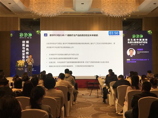 本次論壇西美杰特邀達(dá)普生物周國輝博士為與會人員帶來了“數(shù)字PCR方法在CAR-T質(zhì)控中的應(yīng)用”的專題講座。周國輝博士開發(fā)了一種基于數(shù)字PCR方法的儀器及微流控芯片系統(tǒng),從質(zhì)量控制的角度,實現(xiàn)對CAR-T細(xì)胞等生物制品的質(zhì)控要求。