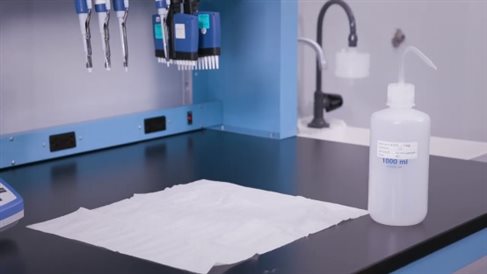 用蒸餾水將20×的濃縮洗滌液稀釋至1×洗滌液裝入洗瓶內(nèi),將吸水紙鋪開放在水槽旁邊干凈的工作臺上。