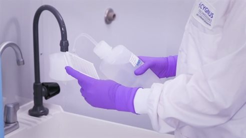因此,Cygnus專家建議在使用Cygnus ELISA試劑盒時盡量采用手動洗板的方法。該方法簡便易學(xué),無需任何特殊設(shè)備。只要準備一些低纖維吸水紙和一個洗瓶就可輕松操作,需要注意的是洗瓶的出水口要修剪成大開口斜面以確保洗液的充分流動與合適的沖洗力度。