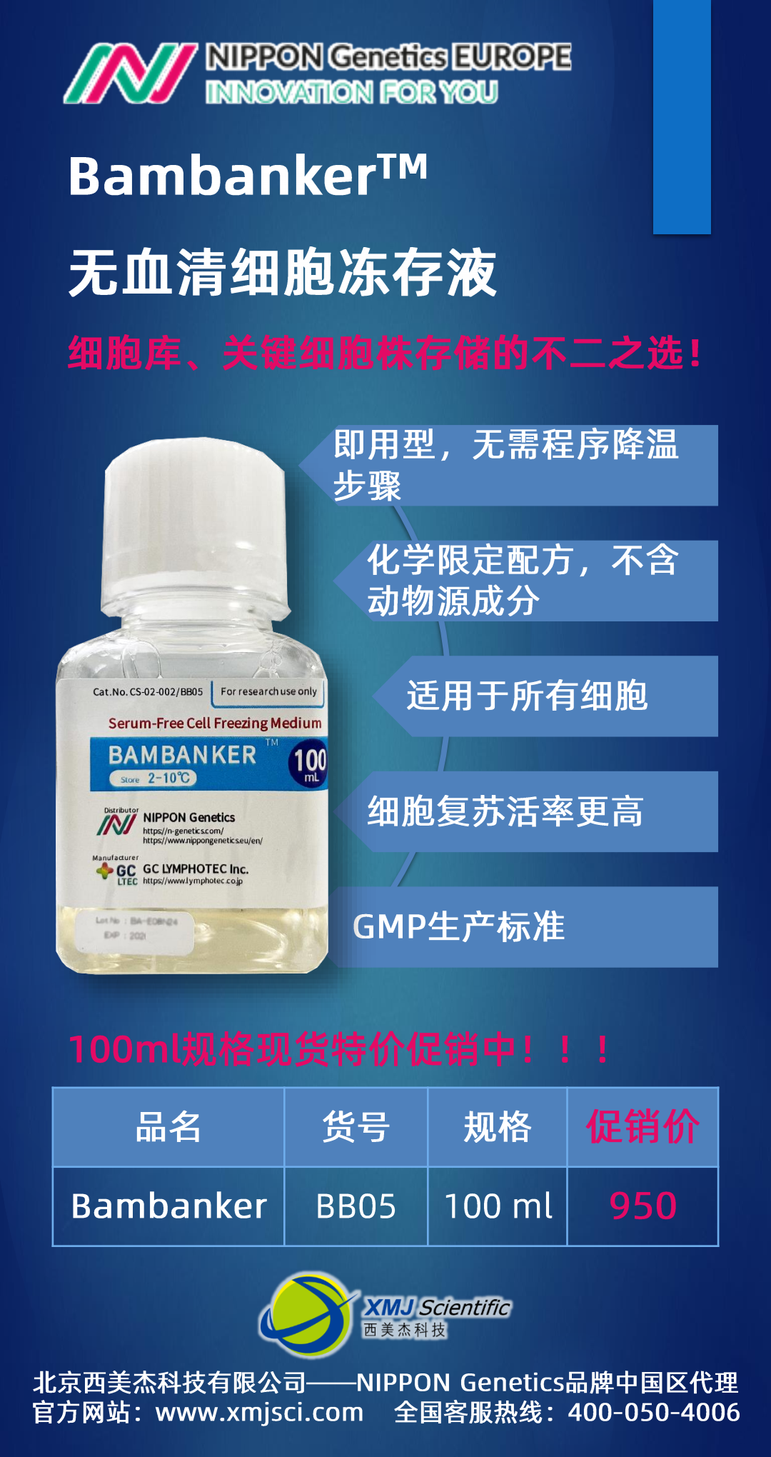 Bambanker?無血清細(xì)胞凍存液現(xiàn)貨促銷100ml特價(jià)950元