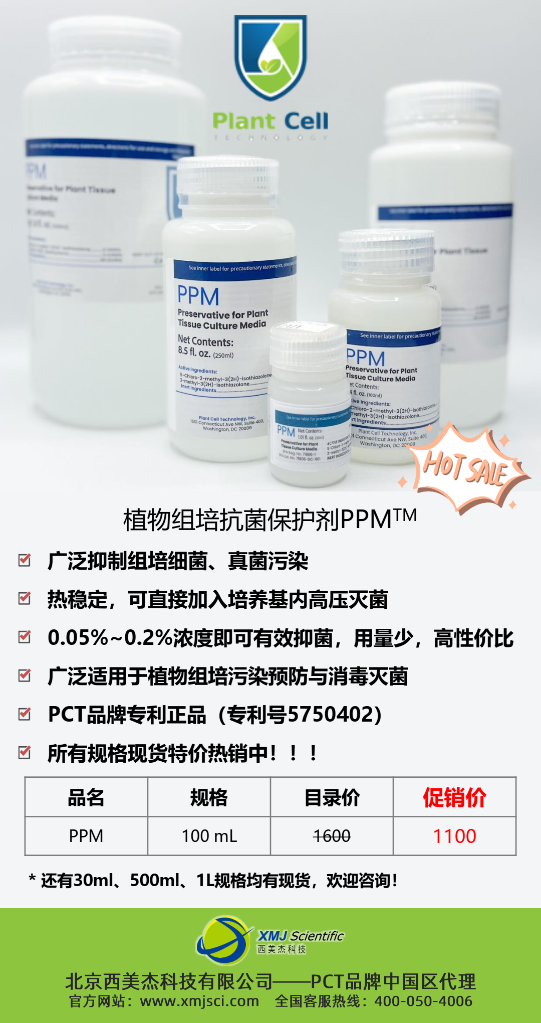 植物組培抗菌保護(hù)劑PPM?現(xiàn)貨促銷100ml特價1100元