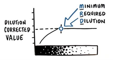 在進(jìn)行ELISA分析之前,任何可能超過(guò)定量上限(ULOQ)的樣品都應(yīng)該先進(jìn)行稀釋線性實(shí)驗(yàn)。其過(guò)程包括:用驗(yàn)證過(guò)的樣品稀釋液對(duì)HCP待檢樣品進(jìn)行多個(gè)梯度稀釋,然后對(duì)這些稀釋樣品進(jìn)行檢測(cè),并計(jì)算每個(gè)稀釋樣品中校正后的HCP濃度(即測(cè)得的HCP濃度×稀釋倍數(shù))。大多數(shù)情況下,在達(dá)到一定稀釋倍數(shù)后,稀釋樣品校正后的HCP濃度值會(huì)出現(xiàn)相對(duì)恒定狀態(tài),那么該稀釋倍數(shù)則被稱為“最低需求稀釋度”(MRD)。