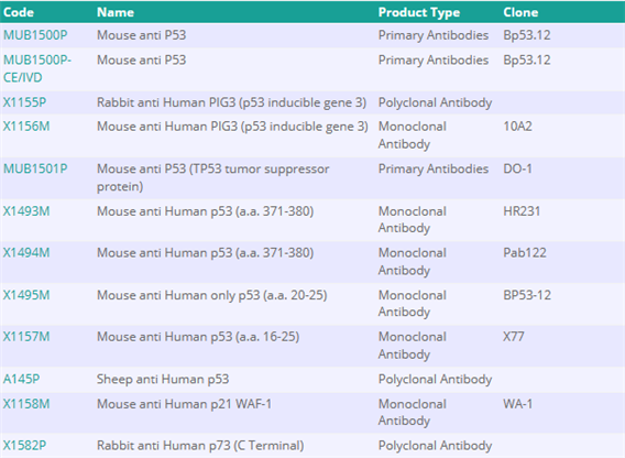 西美杰代理的Nordic-MUbio品牌提供了大量與p53蛋白相關(guān)的抗體產(chǎn)品,這些產(chǎn)品在癌癥領(lǐng)域的研究中發(fā)揮著重要作用。這些抗體的研究方向涵蓋了細胞周期、癌癥、細胞結(jié)構(gòu)、腫瘤學(xué)、細胞凋亡、感染性疾病、CD maker、細胞粘連、酶、細胞外基質(zhì)和干細胞等多個領(lǐng)域。為了方便客戶進行搜索,小編整理了部分與p53蛋白相關(guān)的抗體產(chǎn)品列表: